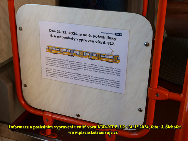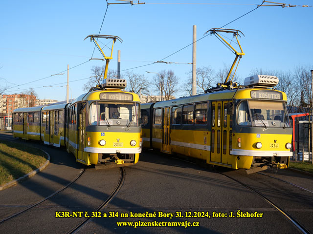Vozy č. 312 a 314 vyjíždí naposledy do pravidelného provozu 31. 12. 2024 na lince č. 4. Nasazeny jsou za sebou na pořadích 5 (314) a 6 (312). Uvnitř vozů jsou umístěny texty informující o poslední jejich jízdě a stručně o jejich historii. Vůz č. 314 naposledy zatahuje do vozovny cca v 19:20. Vůz č. 312 pak až po půlnoci.