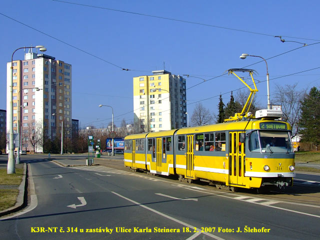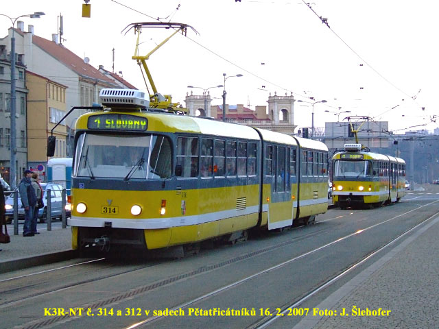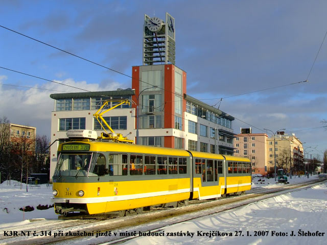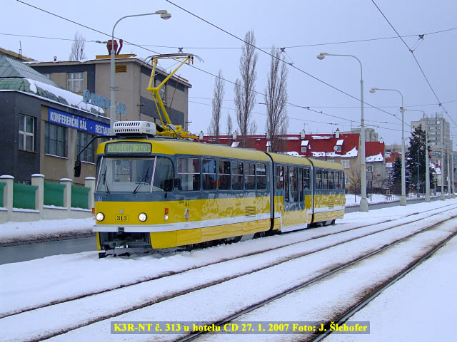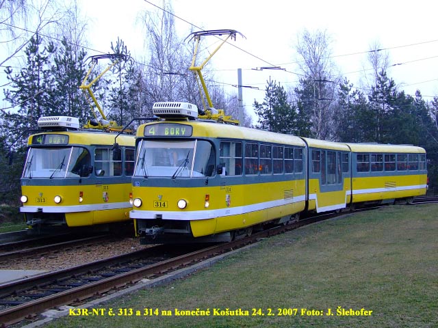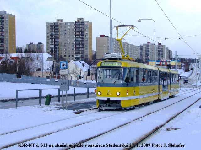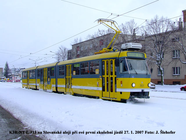 V sobotu 27. 1. 2007 vyjely vozy K3R-NT č. 313 a 314 na své první zkušební jízdy mimo vozovnu. Zkoušeny byly v drsných