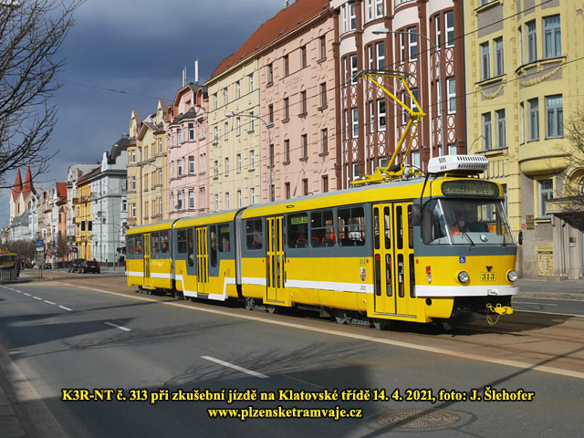 V únoru 2021 je z dílen do vozovny přivezen vůz K3R-NT č. 313. Jeho kompletace je náročnější z důvodu rekonstrukce vozovny. Koncem března se sice objevuje na zkušební jízdě, ale