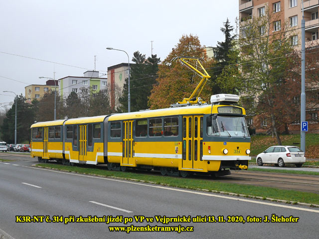 Vůz č. 314 se po dokončené VP objevuje na zkušebních jízdách 13. 11. 2020. Po zkompletování, oživení vozu a vyzkoušení všech funkcí zařízení vždy vyjíždějí na zkušební jízdy nejprve dílenští pracovníci externí firmy,
