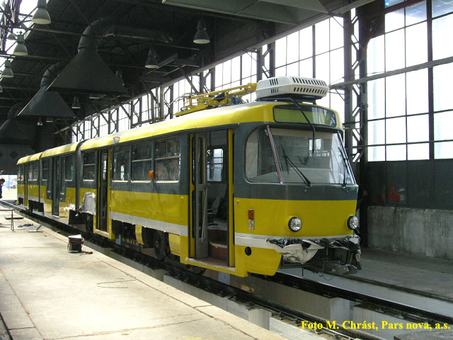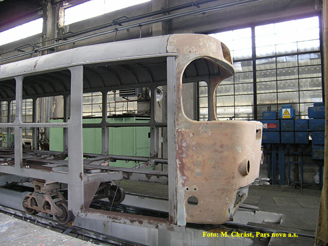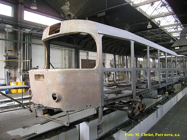 a následující ráno byl skládán na plzeňské koleje. Stejně jako oba předchozí vozy, je i tento bez dokončeného interiéru.