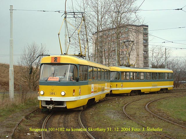 Souprava 101+102 byla již od ledna 2005 odstavena z provozu. Jedná se o původně pražské vozy č. 6326 a 6393 roku výroby 1964. Další info o soupravě 101+102 je zde.