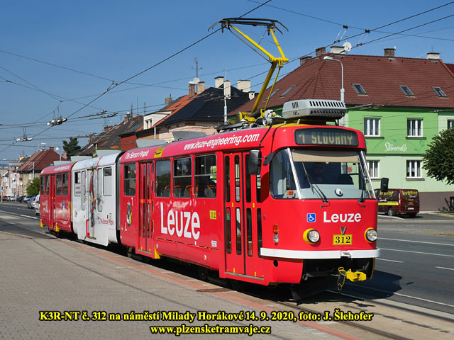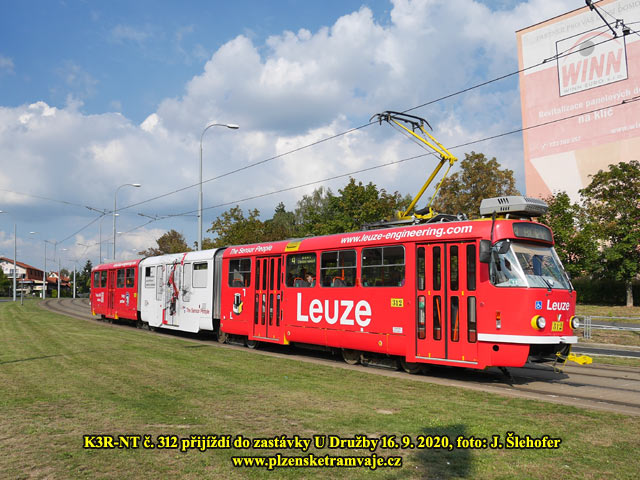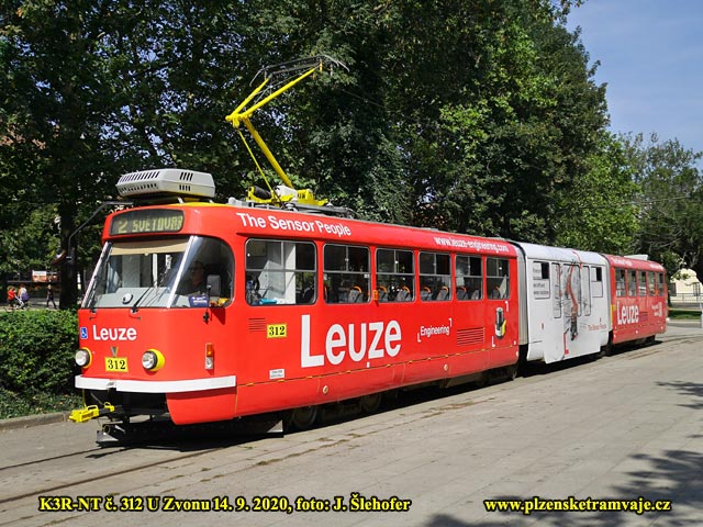 K3R-NT č. 312 dostala celovozovou reklamu společnosti Leuze Engineering. Poprvé v provozu byla 14. 9. 2020 na linkách 1 a 2 (výlukový provoz mezi Anglickým nábřežím střídavě na Slovany či Světovar). Reklam na vozech K3R-NT nebývá mnoho (dosud pouze Černé svědomí a Techmania) a tak jde o zajímavé zpestření provozu.