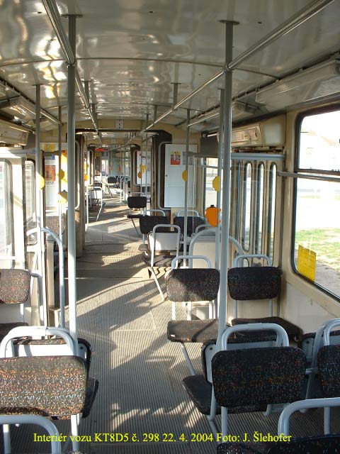 u ostatních byl doplněn později) a nově látkou potažené sedačky. V únoru 2004 se objevily ve vozech KT8D5