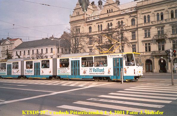 Od pátku 4. 11. 2005 se můžeme setkávat s vozy KT8D5 i na linkách č. 1 a 2. Dosud byly