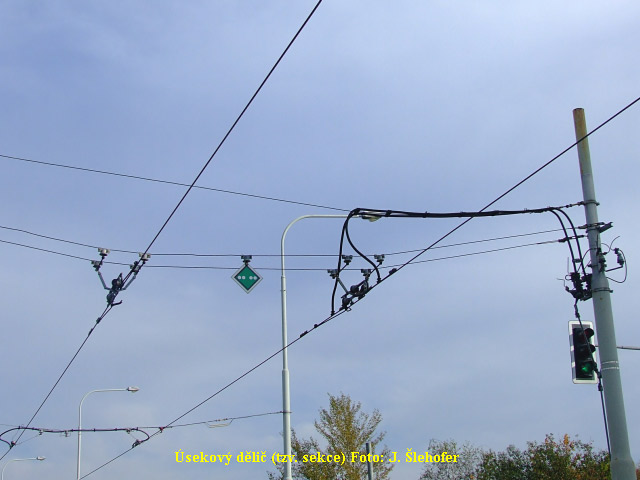 Síť trolejového vedení je rozdělana na úseky úsekovými děliči. V tramvajácké hantýrce se úsekovému děliči říká sekce.