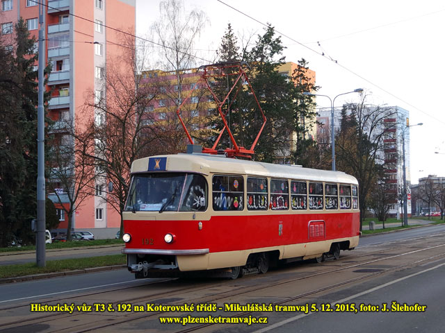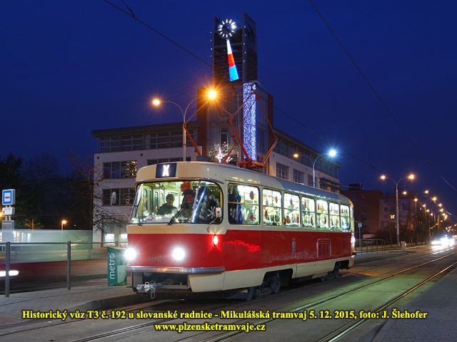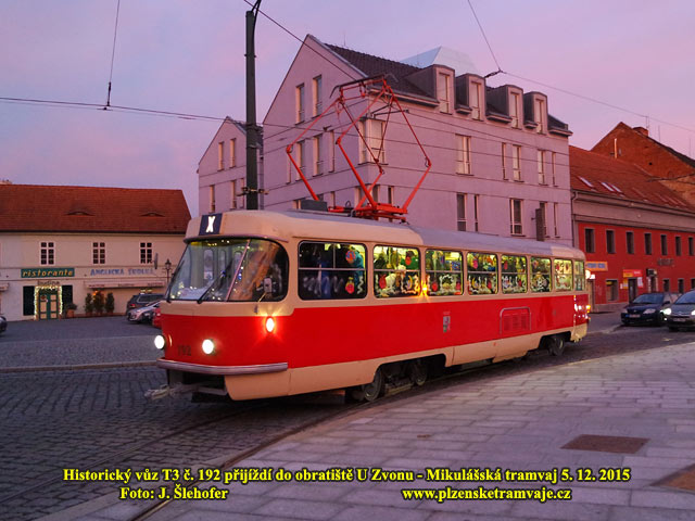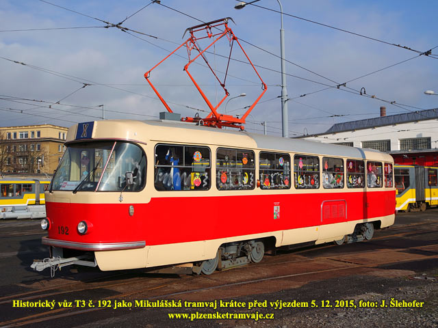 V sobotu 5. 12. 2015 vyjela opět Mikulášská tramvaj. Na tuto zvláštní jízdu byla vypravena již tradičně historická tramvaj T3 č. 192. Akci již po čtvrté pořádali členové