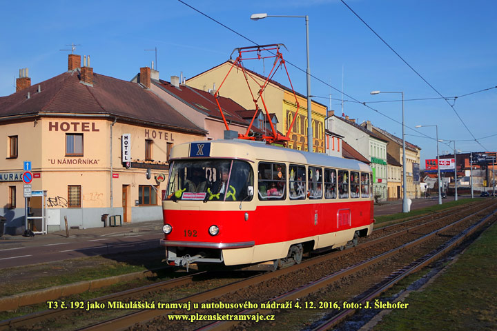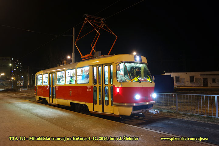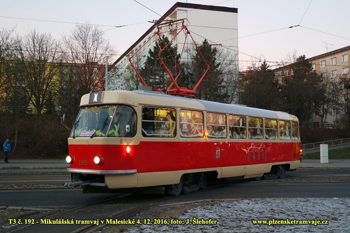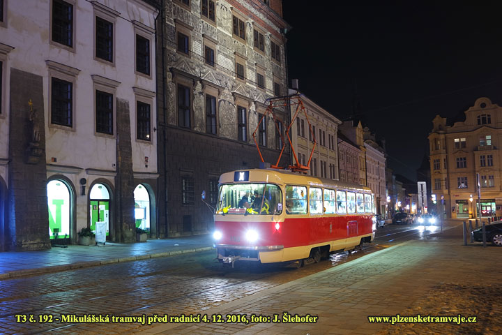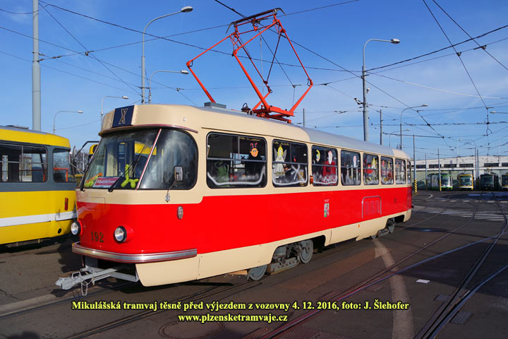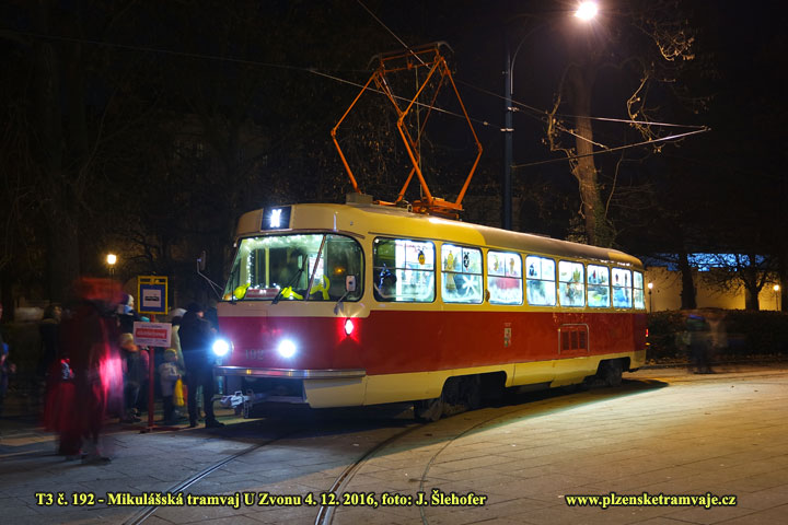 V neděli 4. 12. 2016 odpoledne vyjela již tradiční Mikulášská tramvaj v podobě ozdobeného historického vozu T3 č. 192. Pátý tramvajový ročník (a před tím bylo několik