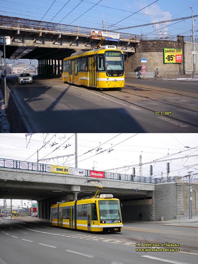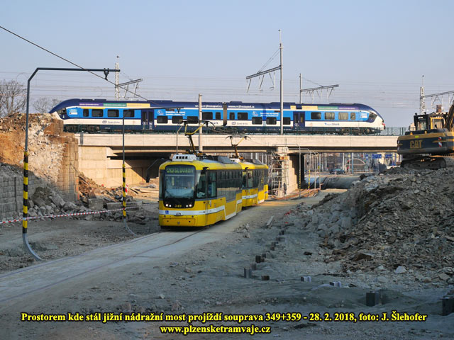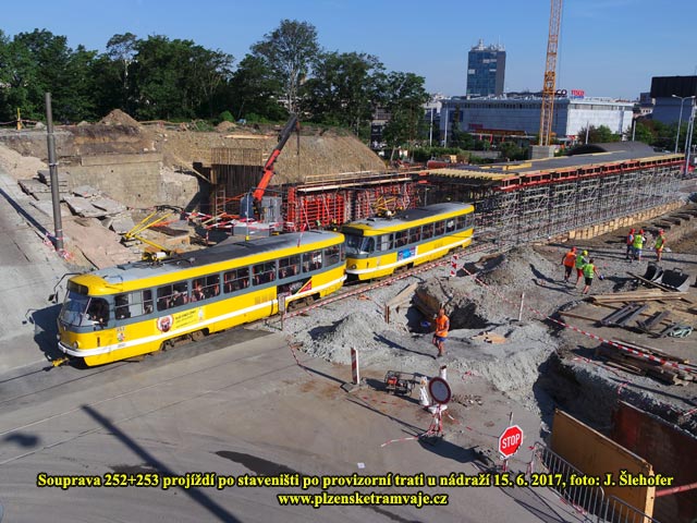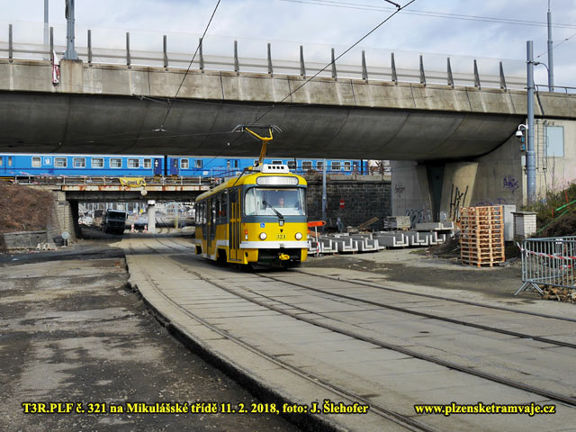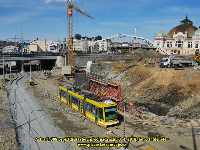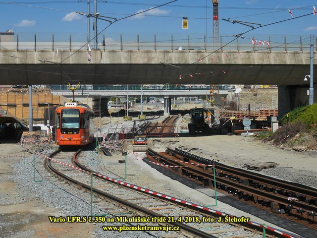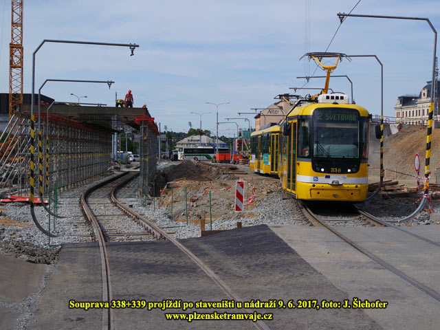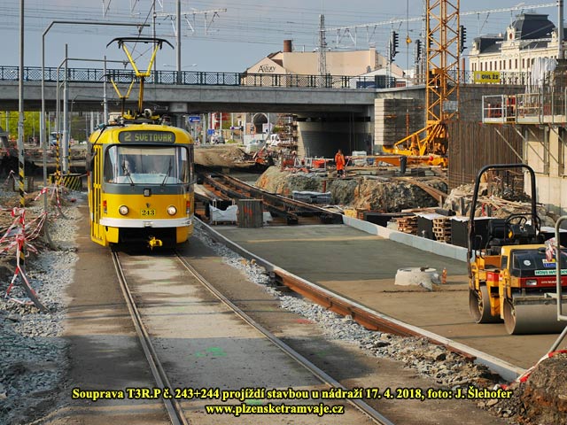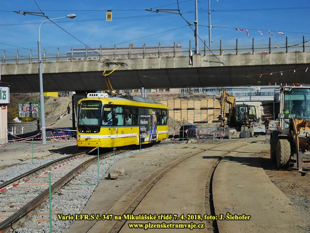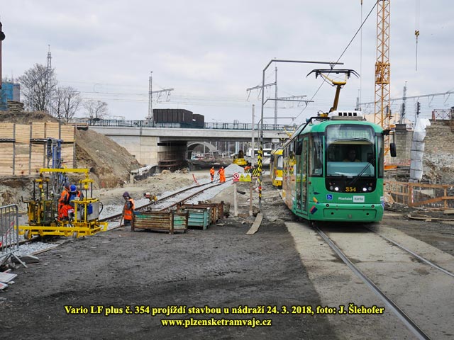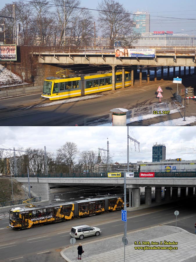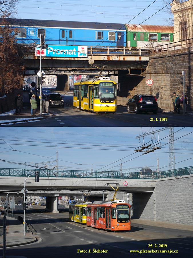 kde tramvaje přejedou po nové spojce na prostisměrnou kolej. Pokračují pod mosty u nádraží až na Mikulášskou třídu, kde se přes kolejovou spojku dostanou