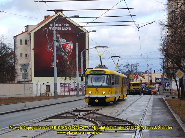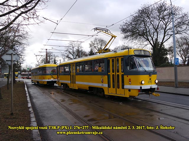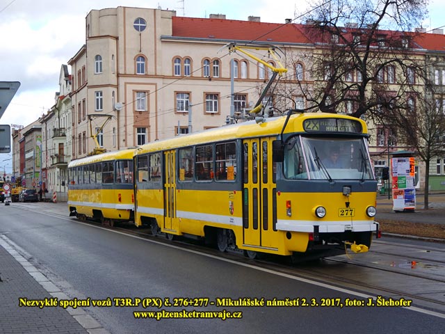 V úterý 2. 3. 2017 se během dopoledne objevuje zkušebně postupně na linkách 1X a 2X souprava T3R.P PX č. 276+277, tedy ve spojení zády k sobě.
