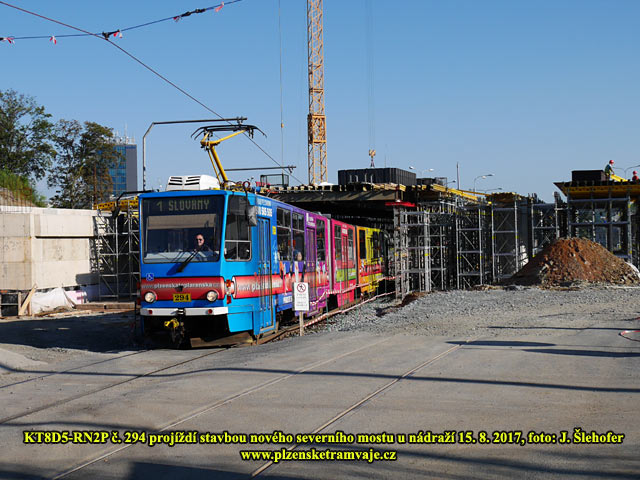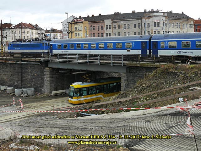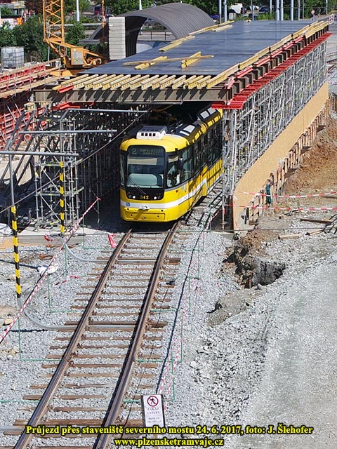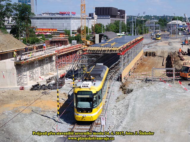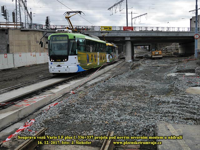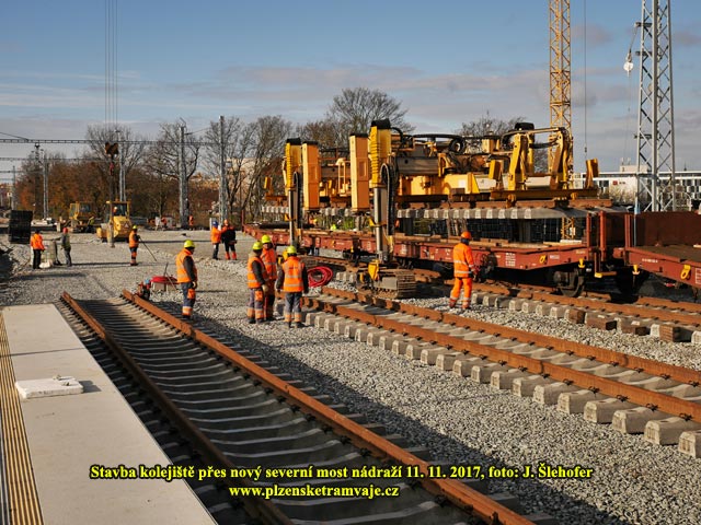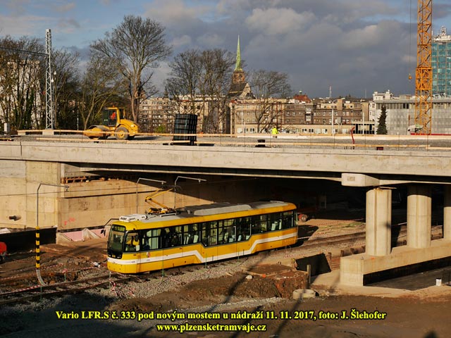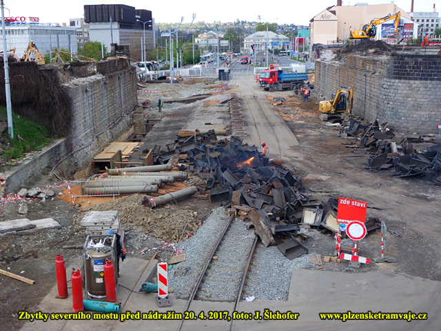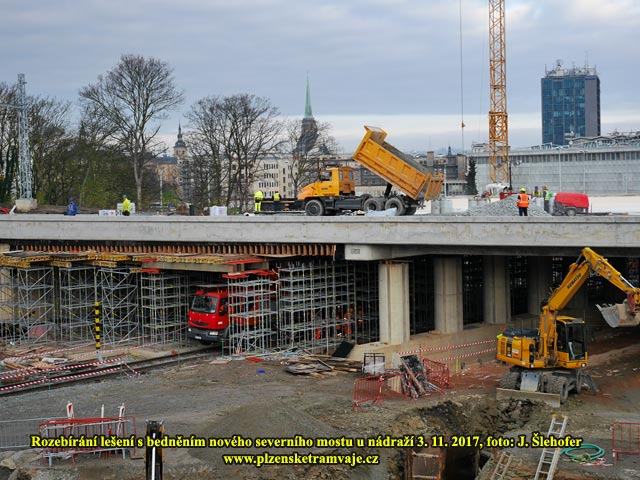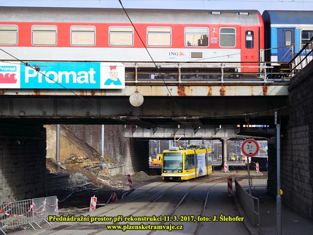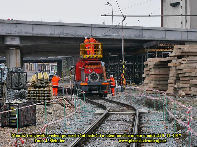 Od 7. 11. 20017 je provoz tramvají pod železničním mostem obnoven a jak je patrné již i z předešlých fotografií, tak na mostě je již budováno železniční kolejiště.
