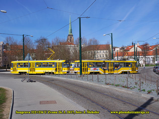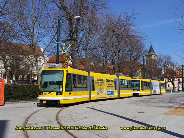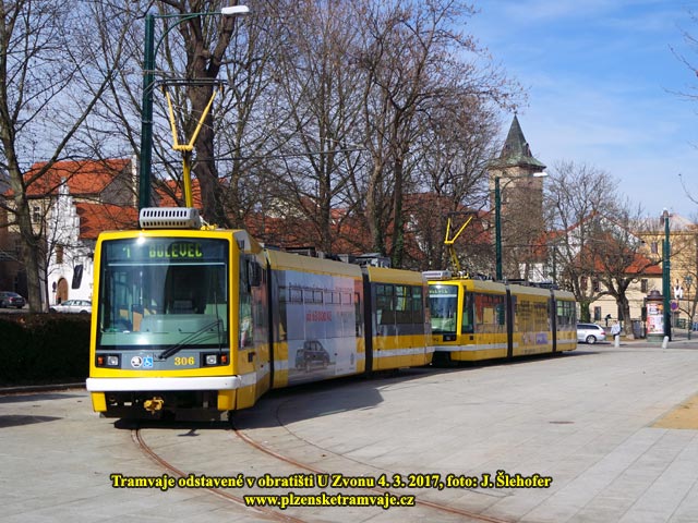 Tramvaje provozované na linkách 1 a 2 (s trasami Bolevec - U Zvonu a Skvrňany - U Zvonu) a také na bezvýlukové lince č. 4 (Bory - Košutka) jsou