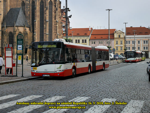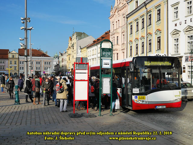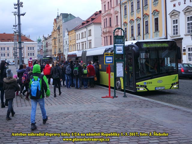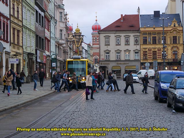 Tramvajové linky č. 1 a 2 od Skvrňan a Bolevce jsou opět ukončeny v zastávce Náměstí Republiky. Vozy se pak otáčí v obratišti u Zvonu. Cestující pak pokračují náhradní autobusovou