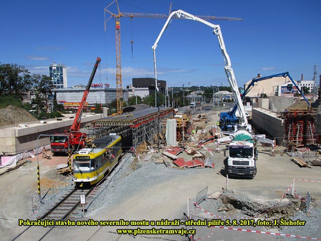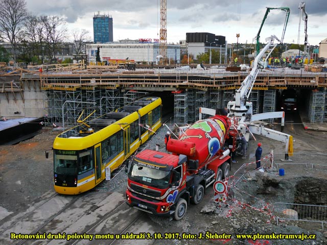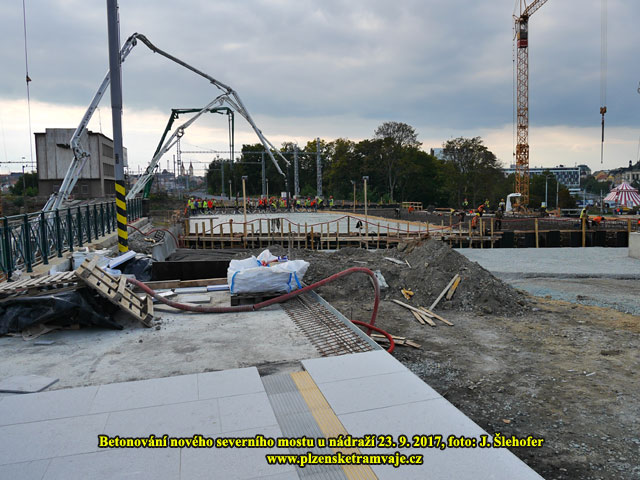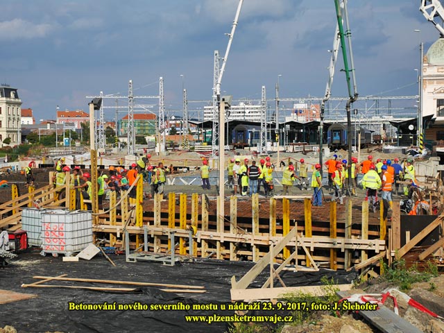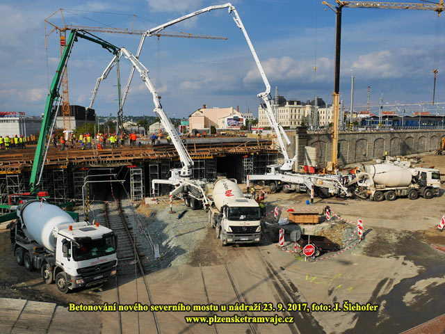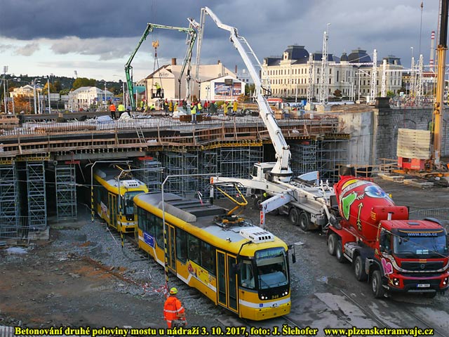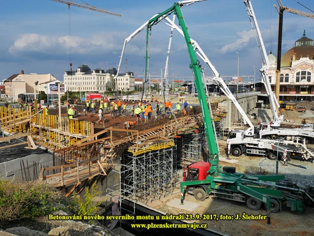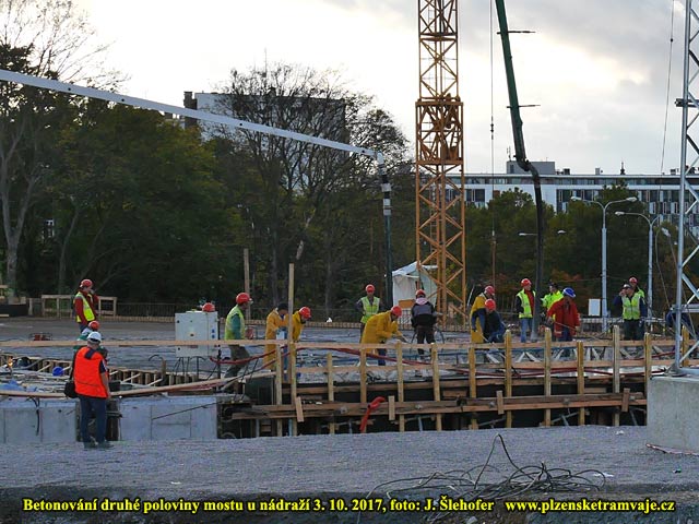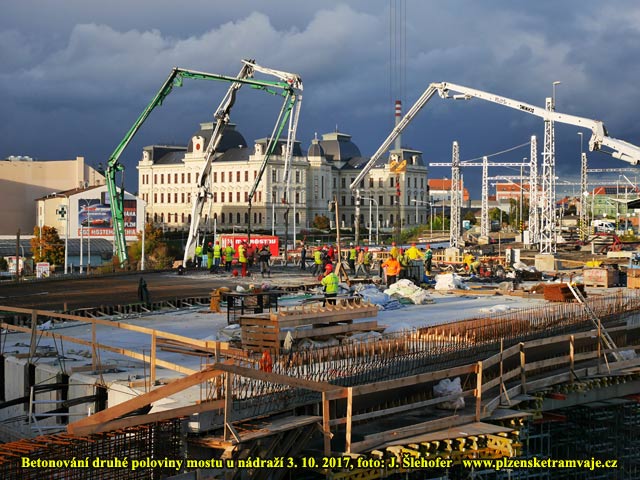 V úterý 3. 10. 2017, zřejmě až v odpoledních hodinách, začali stavbaři s betonováním druhé poloviny severního železničního mostu u nádraží.