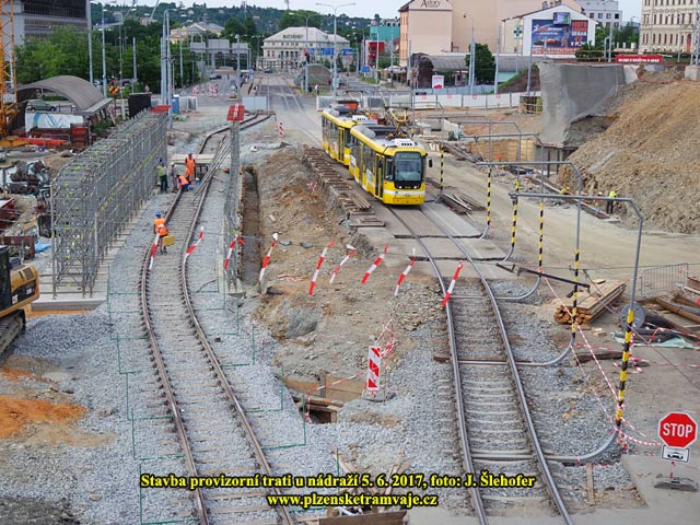 Během března roste na Mikulášské třídě a skrze stavbu nového jižního nádražního mostu nová provizorní trať napojená