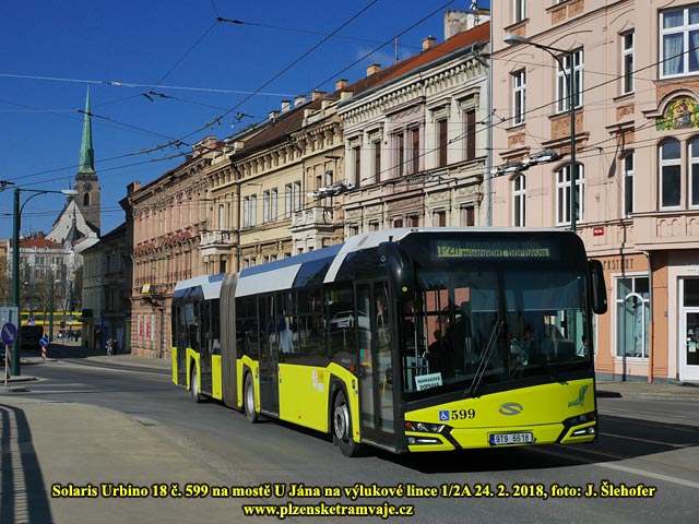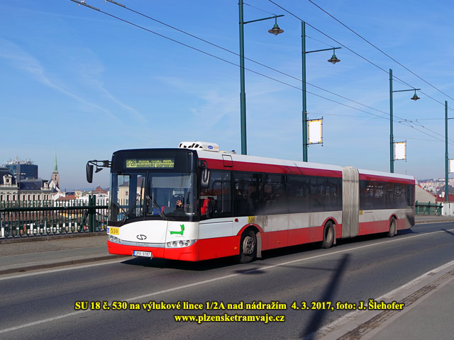 linkou 1/2A směřující přes most na nádražím a Železniční ulicí na Mikulášské náměstí.