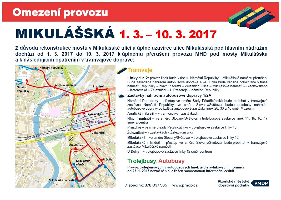 tramvaje neprojedou. Tramvajové spoje ze Slovan označené 1X a ze Světovaru označené 2X, jsou ukončeny na Mikulášském náměstí.