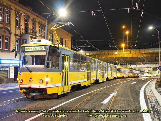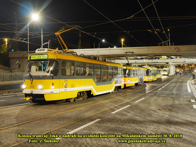 Tramvajová výluka kolem nádraží probíhala do čtvrtka 30. 8. 2018. Již večer byly poslední tramvaje směřující z Mikulášského náměstí na Slovany a Světovar nahrazeny