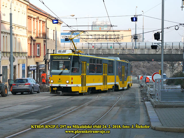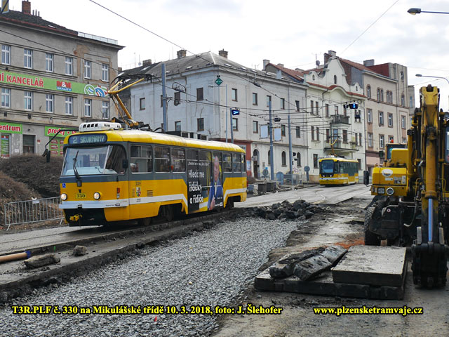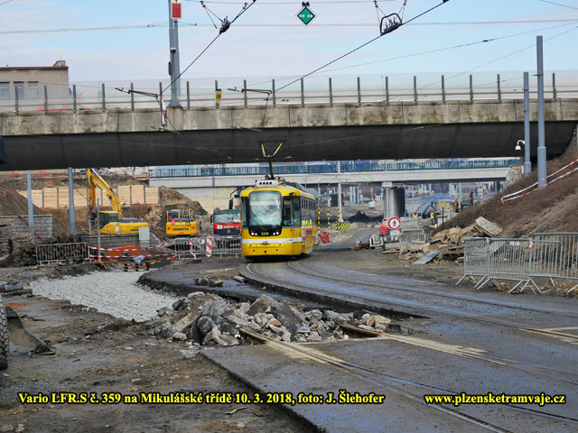 Ná následujcíh snímcích jsou zachyceny důvody výluky. Kromě instalace dvojité kolejové spojky na Mikulášské třídě, je nedaleko od ní tramvajová trať přerušena výkopem pro plynové potrubí