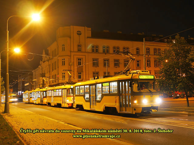 Z konečných Mozartova, Košutka a Skvrňany se po třiadvacáté hodině začaly vracet tramvaje zde odstavené jako šejdrové čí záložní vozy.