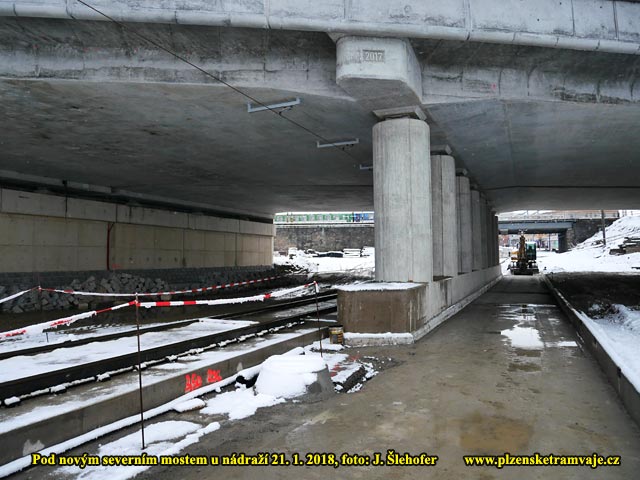 Po krátké vánoční přestávce se pod dokončeným severním mostem rozbíhají práce na stavbě definitivní koleje pro směr z centra.