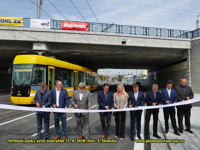 Od pátečního rána pak tramvaje již projíždějí dvoukolejně kolem nádraží. V poledne 31. 8. 2018 je před nádražím uspořádána tisková konference u příležitosti obnovení provozu pod novými železničními mosty.