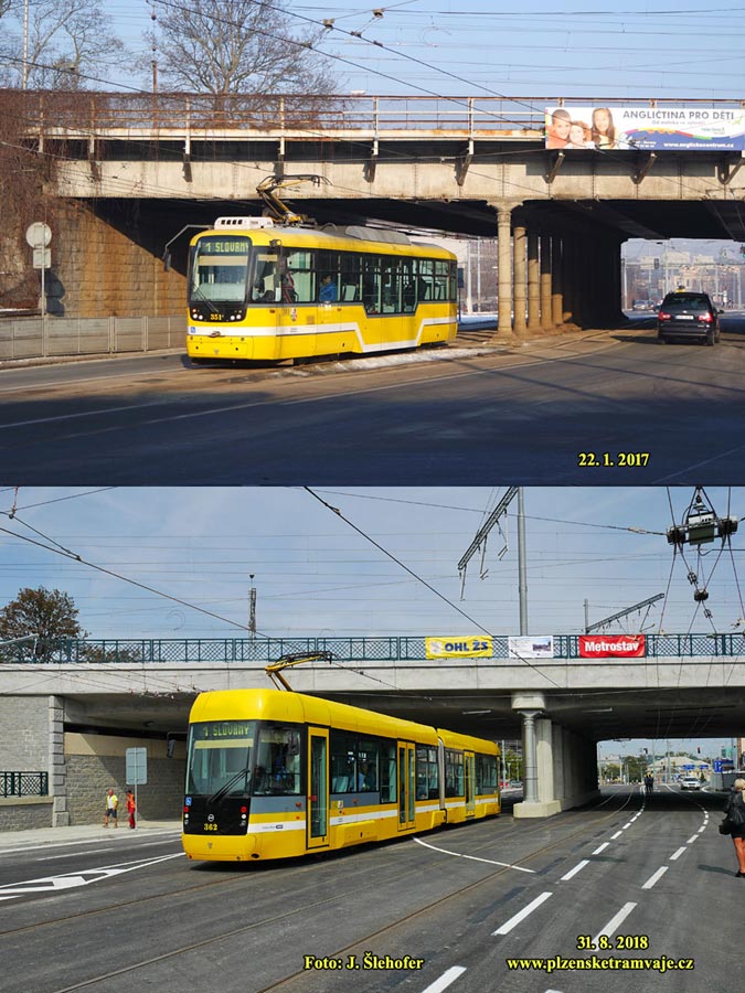 přes most nad nádražím až na náměstí Republiky. Odtud již pokračují tramvaje linek 1 a 2 do Bolevce či Skvrňan. Provoz na lince č. 4 je beze změn (s vyjímkou nezatahování vozů do vozovny Slovany).