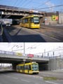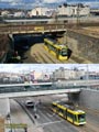 na kolej ve směru z centra. Její stavba spolu s provozem po původní koleji jsou zachyceny na následujícíh obrázcích.