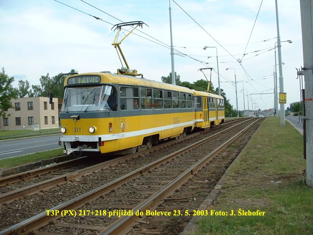 dne je v provozu sólo vůz T3 č. 187, zachycený na fotografii vpravo v Bolevci. Celou soupravu totiž čeká velká