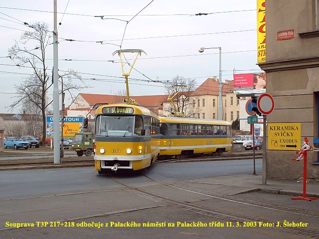 úvraťová výhybka kaliforňan, byly nasazeny obousměrné vozy KT8D5. Z Palackého ulice pak pokračovaly