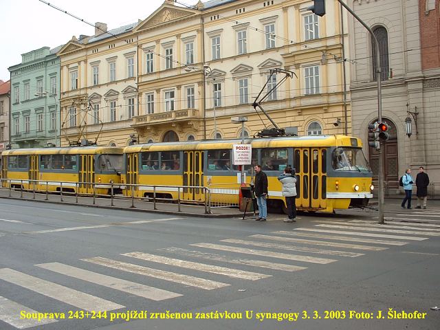 brzd. Soupravu 243+244 ponechal nyní v zastávce Lékařská fakulta.