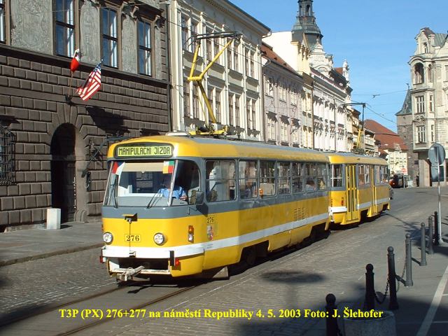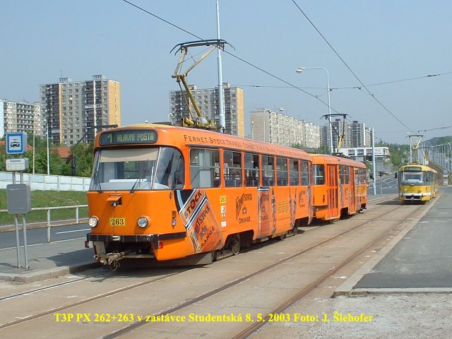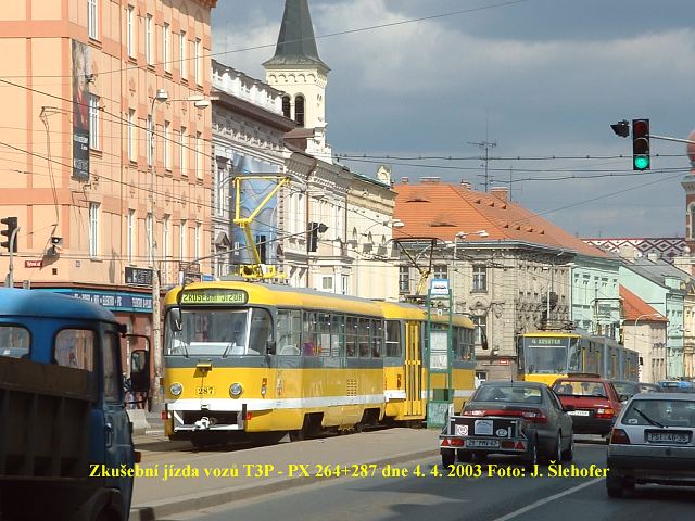 vozy T3P č. 264+287 spojené zády k sobě tzv. PX. Takto spojené soupravy doplní dvanáct obousměrných vozů KT8D5,