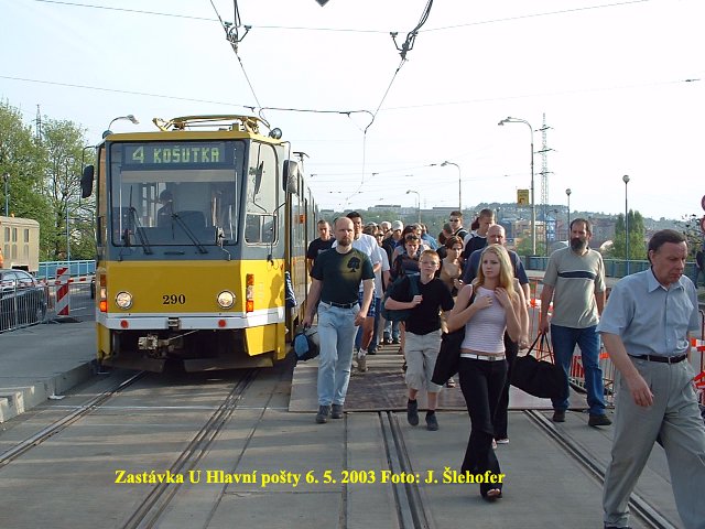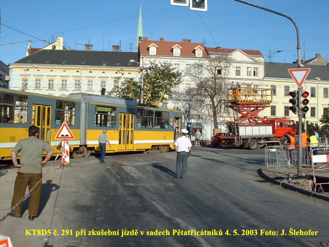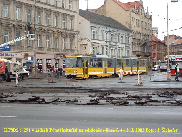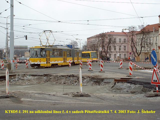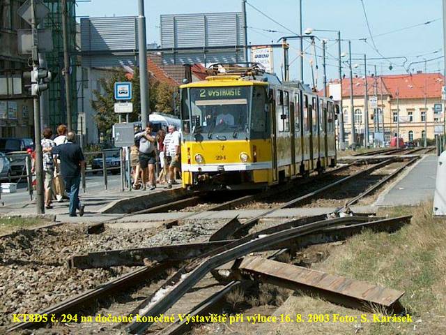 10. 7. 2003 se po dlouhé době objevil na lince č. 2 mimořádně vůz KT8D5, konkrétně č. 290 (vlevo). Od stejného