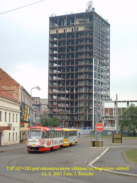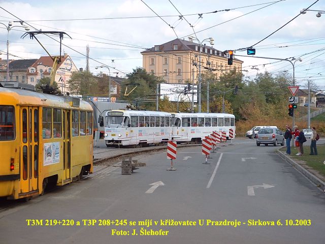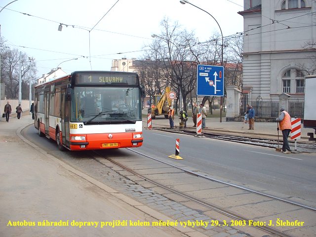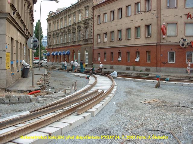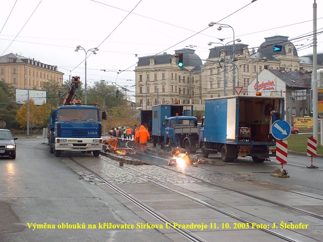 Po odkrytí koleje v předchozím týdnu, probíhala v sobotu 11. 10. 2003 k vůli výměně oblouku v křižovatce U Prazdroje - Sirkova výluka