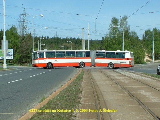 výjezdu z konečné Košutka. Vůz vykolejil zadním podvozkem na sjízdné vyhybce při jízdě z odbočky. V oblouku