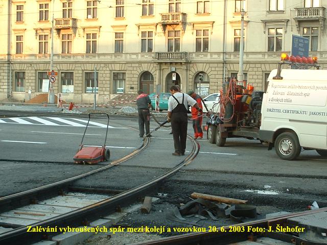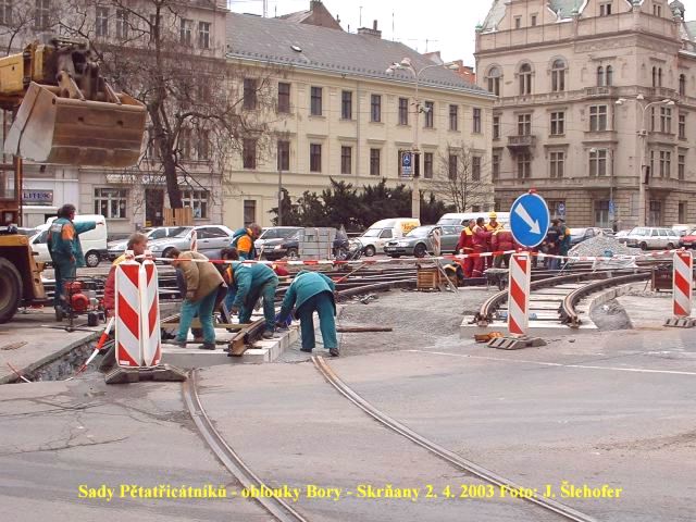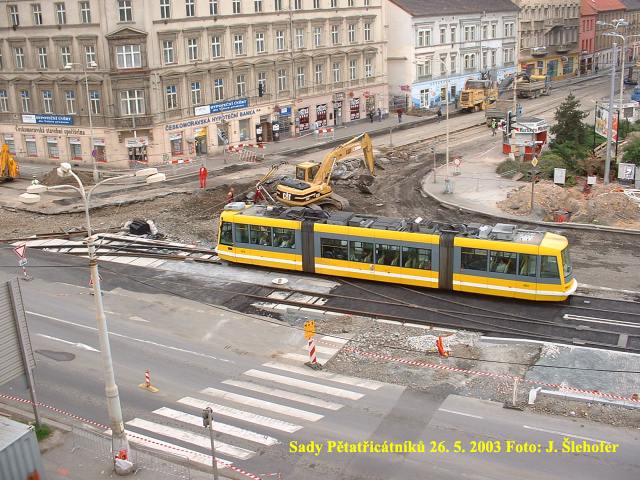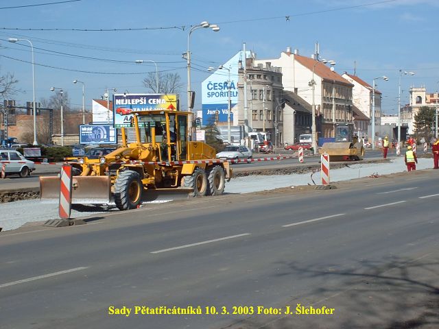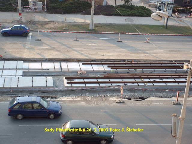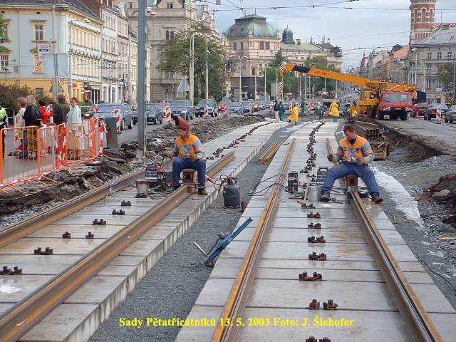 V sobotu 15. 11. 2003 se pokládala poslední asfaltová vrstva v kolejišti v sadech Pětatřicátníků. Protože se