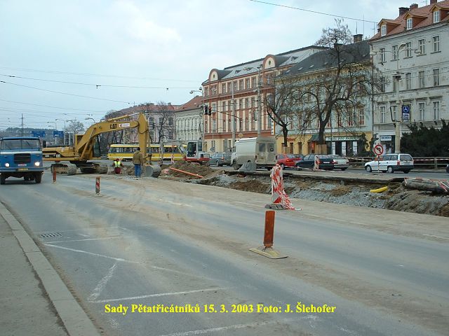 Před záhájením III. etapy rekonstrukce sadů Pětatřicátníků byl o víkendu 3. a 4. 5. 2003 přerušen