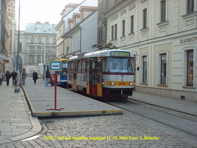 respektive díky nějaké závadě na trolejích však došlo 12. 11. 2003 ke "stržení" několika pantografů.