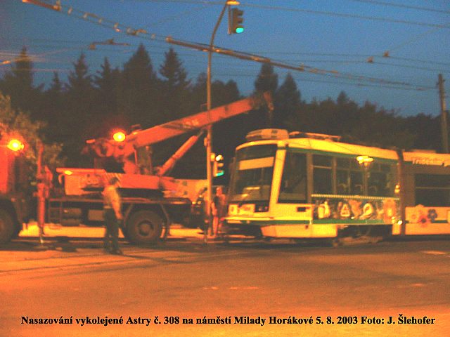 V úterý 5. 8. 2003 před devátou hodinou večerní došlo k vykolejení Astry 308 na náměstí Milady Horákové. Došlo
