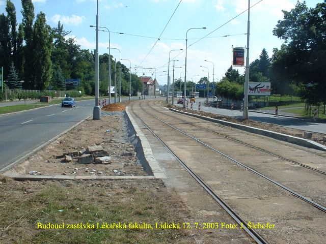 Přibližně na přelomu června a července se začalo s budováním nové tramvajové zastávky mezi stanicemi Ve vilách