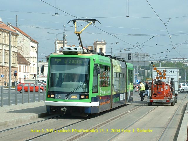 V pondělí 21. 6. 2004 strhnulo nákladní auto s hydraulickou rukou tramvajové troleje na náměstí Míru. Vedení bylo stržené