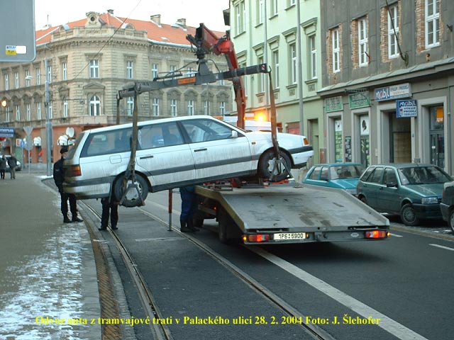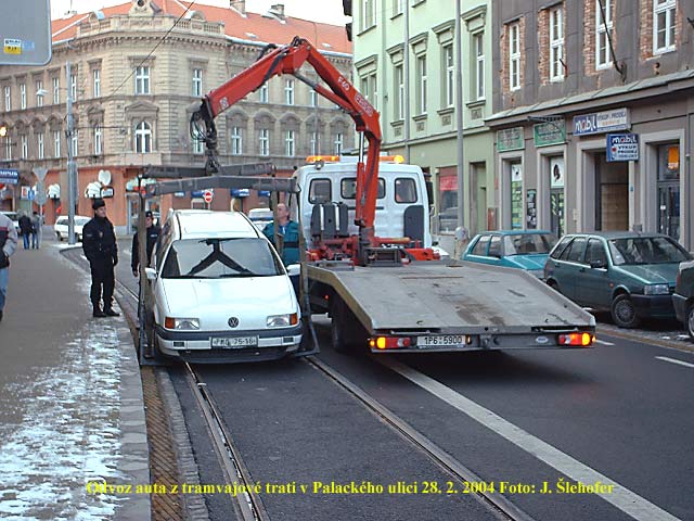 pomohlo kdyby na kolejích v Palackého ulici neparkovaly auta, snad ani není zapotřebí psát. Asi po půl hodině byla tramvaj