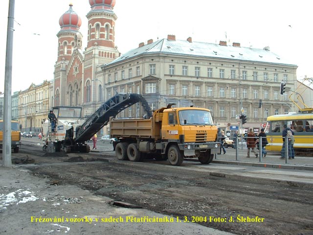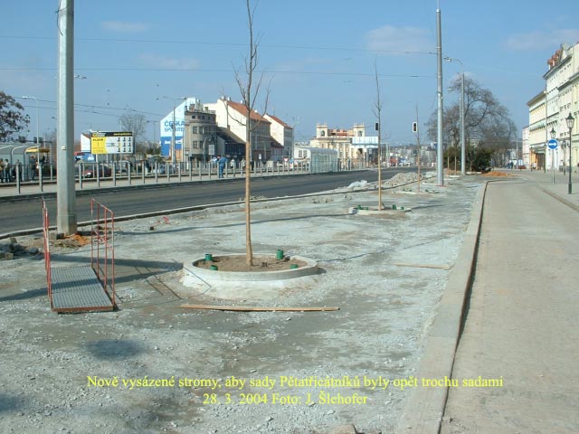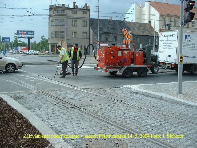 V sobotu 15. 5. 2004 panoval v sadech Pětatřicátníků čilý pracovní ruch. V křižovatce U Hlavní pošty probíhalo asfaltování či