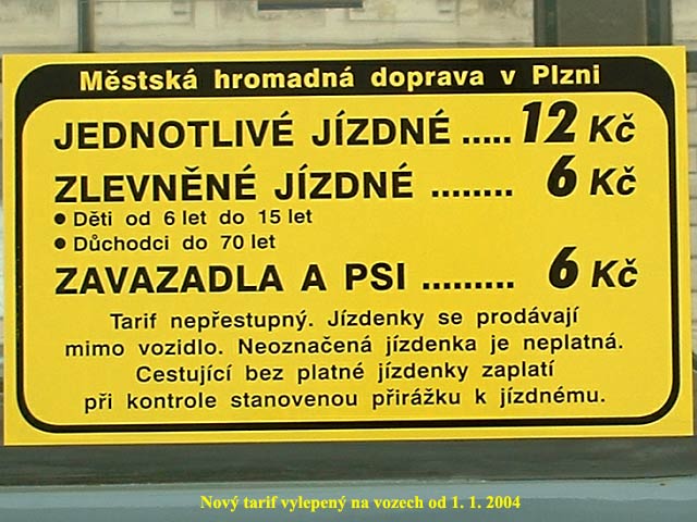 Jak už mnohokrát v médiích zaznělo, platí od nového roku vyšší ceny jízdného. Od 1. 1. 2004 byly nové tarify již