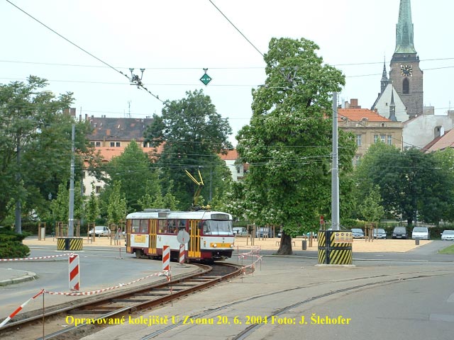 Ze soboty 19. na neděli 20. 6. 2004 byla vyměněna první část kolejí U Zvonu. Již v předcházejícím týdnu bylo kolejiště odkryté.