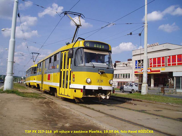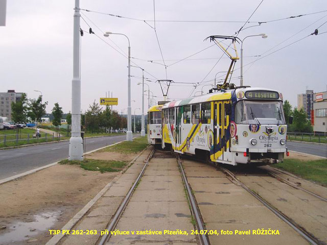 zády k sobě, kdy cestující mohou být přepravováni vždy jen v prvním voze). Spojeny jsou takto dvě soupravy vozů T3P č. 217+218 a 262+263. Výluka by měla trvat až do konce prázdnin.
