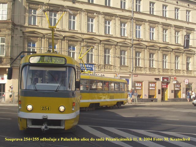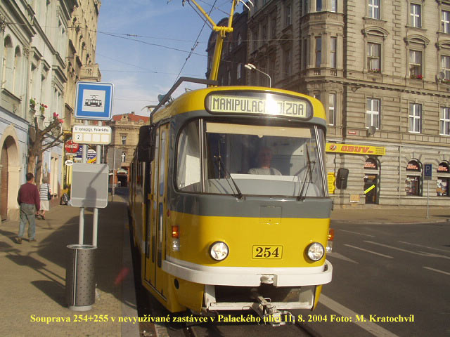 nepoužívané trati Palackého ulicí. Z tohoto důvodu zde projížděla několikrát souprava 254+255.