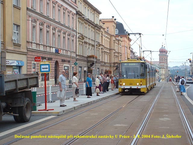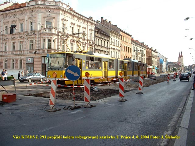 Po zastávkách u Centrálního autobusového nádraží a Náměstí Míru přišla na řadu rekonstrukce zastávky U Práce. Ve směru na Bory se rozšířil nástupní ostrůvek na úkor jízdníh pruhu a rozšířen byl trochu i chodník podél Klatovské.