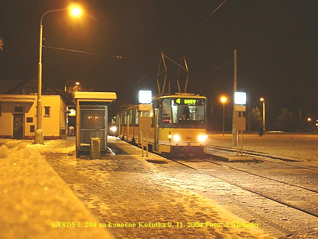 zastávek. Na fotografíích ze smyčky Košutka (Vpravo) je zachycen i první letošní sníh 9. 11. 2004.