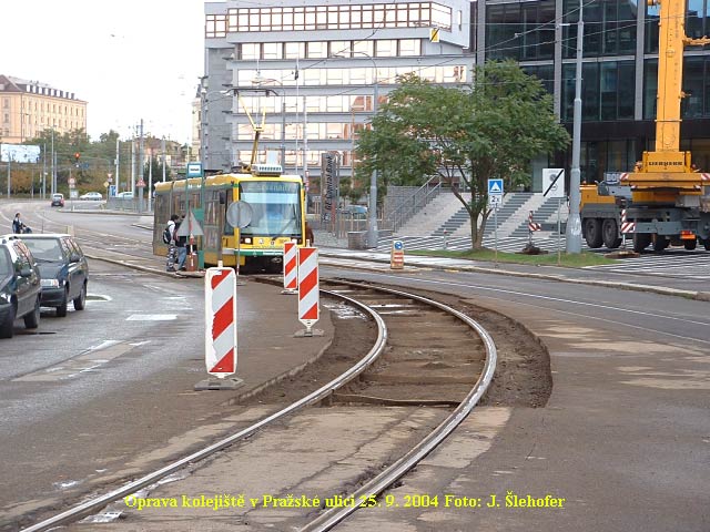 V sobotu 16. 10. 2004 dopoledne probíhala výluka tramvajové trati do Bolevce, kde se na konečné měnilo trolejové vedení.